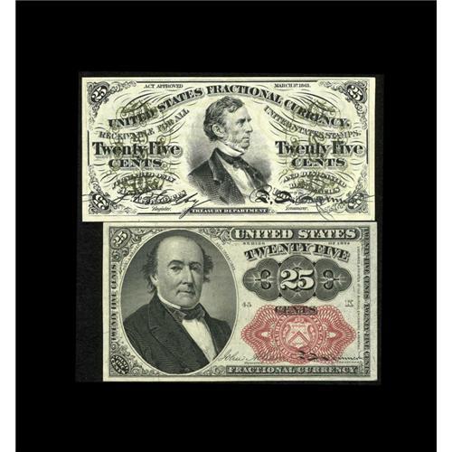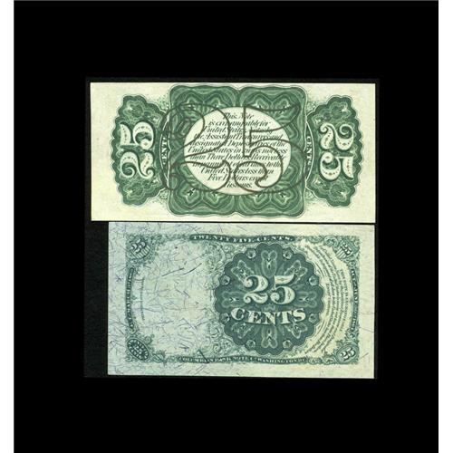 <B>A pair of Gem 25 Cent Notes.</B></I><BR>Fr. 1294 25¢ Third Issue <B>Gem New,</B></I> internal tear<BR>Fr. 1309 25¢ Fifth Issue <B>Superb Gem New</B></I>.<BR>The Fesseden has a small tear or weak spot along with bronze outline of the "2" on reverse.<BR>