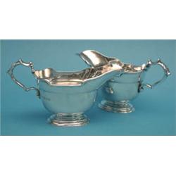 A pair of George II design silver sauce boats with scroll handles (18ozs) £250-300