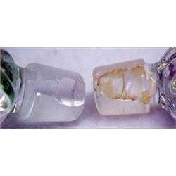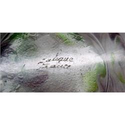 A pair of Lalique crystal scent bottles with stoppers, clear intertwined panels, each with a center molded green dot, chips on both stoppers, early to mid 20th C., both signed on bottom Lalique France Estimate 500/1000