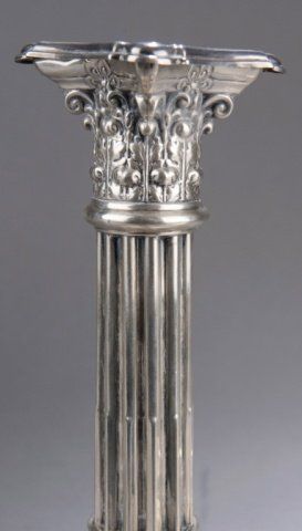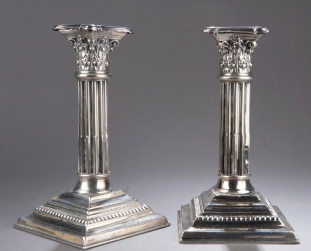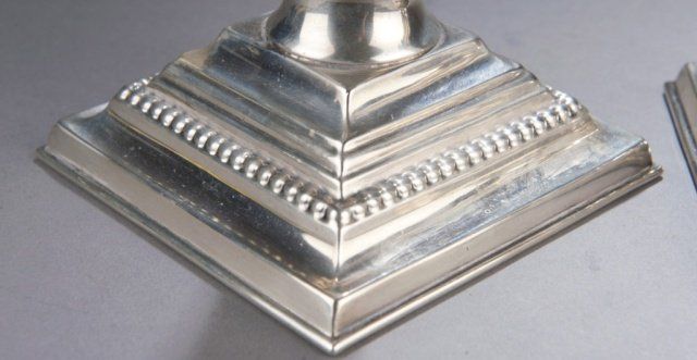 A pair of Mauser sterling silver candlesticks. Neoclassical style Last quarter 19th century. 8"h x 4 1/4"w x 4 1/4"d. 22.22 t ozs.