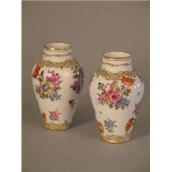 A pair of Meissen style baluster vases, painted with floral sprays 4.5in. £80-120