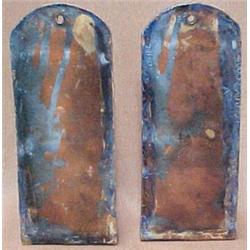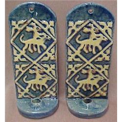 A pair of Moravian Pottery sconces "Deer Riding Wolf", 11" x 4 1/2", unmarked, early 20th C. Estimate 800/1200