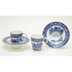 A pair of Royal Worcester bone china coffee cups, and trembleuse saucers, printed with a chinoiserie landscape in blue, dated code 1904 £80-120