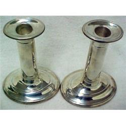 A pair of Steiff sterling silver candlesticks, Colonial Williamsburg design, each with removeable drip cups on round standards on oval bases, 5 1/2" high, marked on bottom Estimate 120/225