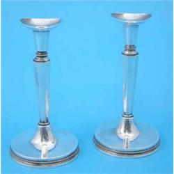 A pair of Swedish white metal candlesticks with tapered octagonal stems and loaded circular feet, 7.5ins. £150-200