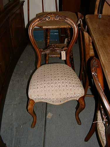 A pair of Victorian balloon-back chairs; three cane seat chairs; and a bamboo and rattan occasional table £80-120