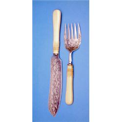 A pair of Victorian silver fish servers, with ivy engraved blades and carved ivory handles, Sheffield, 1873 £120-180