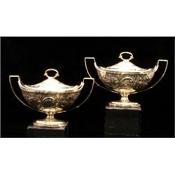 A pair of Victorian style oval twin handled sauce tureens and covers, foliate embossed decoration, gilt interiors, maker's mark GN, RH, Chester 1962, 31oz. (4) See Illustration £250-350