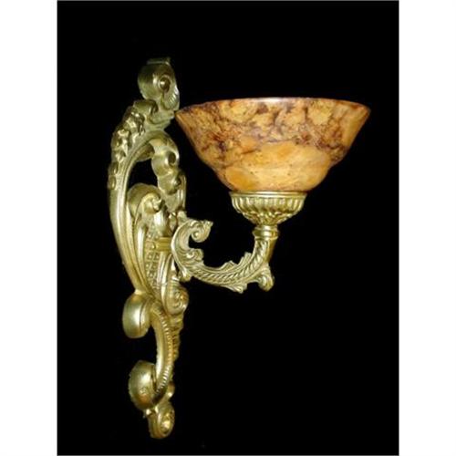 The artwork of the casted bronze of this pair of alabaster stone sconces make this item unique.Shipping cost within USA: 75.00. Some assembling may be required. They were rewired to USA standards.Due to the nature of alabaster stone the pictures may not accurately represented the color and pattern of the alabaster.