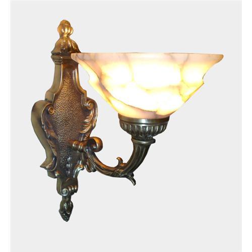 The artwork of the cast bronze of this pair of alabaster stone sconces make this item unique.Shipping cost within USA: 85.00. Some assembling may be required. They were rewired to USA standards.Due to the nature of alabaster stone the pictures may not accurately represented the color and pattern of the alabaster.