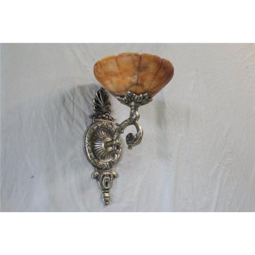 The artwork of the cast bronze of this pair of alabaster stone sconces make this item unique.Shipping cost within USA: 75.00. Some assembling may be required. They were rewired to USA standards.Due to the nature of alabaster stone the pictures may not accurately represented the color and pattern of the alabaster.It will take 4 to 5 weeks to deliver.