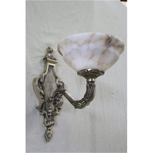 The artwork of the cast bronze of this pair of alabaster stone sconces make this item unique.Shipping cost within USA: 75.00. Some assembling may be required. They were rewired to USA standards.Due to the nature of alabaster stone the pictures may not accurately represented the color and pattern of the alabaster.It will take 4 to 5 weeks to deliver.