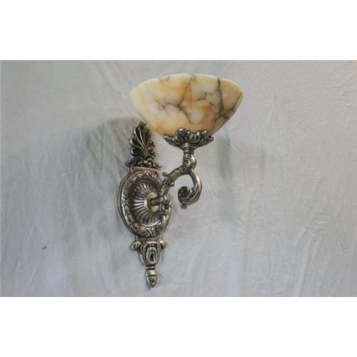The artwork of the cast bronze of this pair of alabaster stone sconces make this item unique.Shipping cost within USA: 75.00. Some assembling may be required. They were rewired to USA standards.Due to the nature of alabaster stone the pictures may not accurately represented the color and pattern of the alabaster.It will take 4 to 5 weeks to deliver.