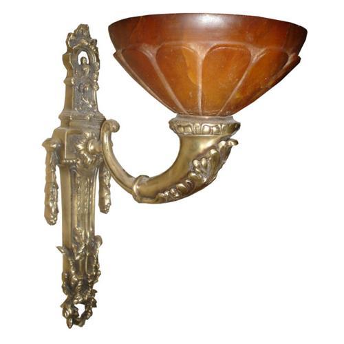 The artwork of the cast bronze of this pair of alabaster stone sconces make this item unique.Shipping cost within USA: 75.00. Some assembling may be required. They were rewired to USA standards.Due to the nature of alabaster stone the pictures may not accurately represented the color and pattern of the alabaster. It will take 4 to 5 weeks to deliver