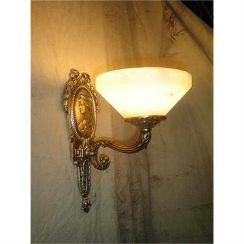 The artwork of the cast bronze of this pair of alabaster stone sconces make this item unique.Shipping cost within USA: 75.00. Some assembling may be required. They were rewired to USA standards.Due to the nature of alabaster stone the pictures may not accurately represented the color and pattern of the alabaster. It will take 4 to 5 weeks to deliver.