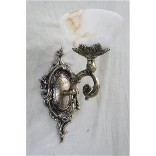 The artwork of the cast bronze of this pair of alabaster stone sconces make this item unique.Shipping cost within USA: 75.00. Some assembling may be required. They were rewired to USA standards.Due to the nature of alabaster stone the pictures may not accurately represented the color and pattern of the alabaster.It will take 4 to 5 weeks to deliver.