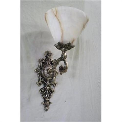 The artwork of the cast bronze of this pair of alabaster stone sconces make this item unique.Shipping cost within USA: 75.00. Some assembling may be required. They were rewired to USA standards.Due to the nature of alabaster stone the pictures may not accurately represented the color and pattern of the alabaster.It will take 4 to 5 weeks to deliver.