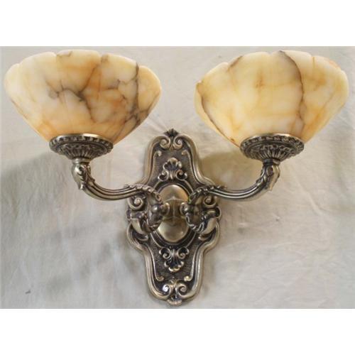 The artwork of the cast bronze of this pair of alabaster stone sconces make this item unique.Shipping cost within USA: 75.00. Some assembling may be required. They were rewired to USA standards.Due to the nature of alabaster stone the pictures may not accurately represented the color and pattern of the alabaster.It will take 4 to 5 weeks to deliver.