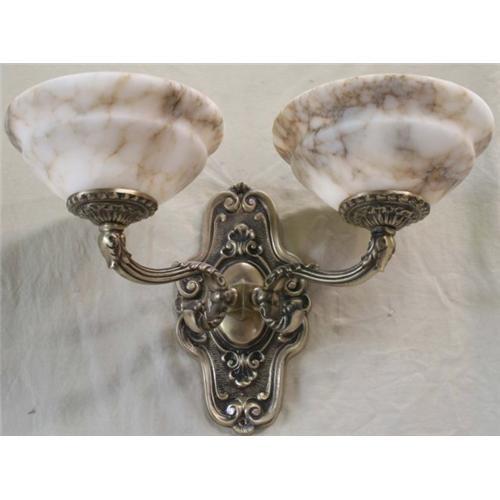 The artwork of the cast bronze of this pair of alabaster stone sconces make this item unique.Shipping cost within USA: 75.00. Some assembling may be required. They were rewired to USA standards.Due to the nature of alabaster stone the pictures may not accurately represented the color and pattern of the alabaster.It will take 4 to 5 weeks to deliver.