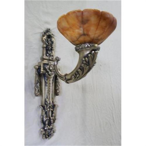 The artwork of the cast bronze of this pair of alabaster stone sconces make this item unique.Shipping cost within USA: 75.00. Some assembling may be required. They were rewired to USA standards.Due to the nature of alabaster stone the pictures may not accurately represented the color and pattern of the alabaster.It will take 4 to 5 weeks to deliver.