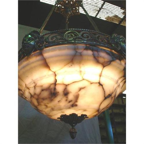 A pendant with alabaster stone and casted bronze of stunning quality.Some assembling may be required. Shipment within USA $ 100. It was rewired to USA standard.Due to the nature of alabaster stone the pictures may not accurately represented the color and pattern of the alabaster.Due to the nature of alabaster stone the pictures may not accurately represented the color and pattern of the alabaster.