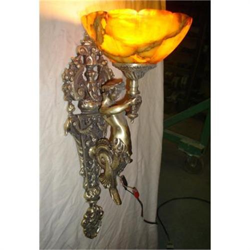 A pair of casted bronze and alabaster stone sconce with winged mermaid figural. The shipping cost within USA is $ 100.00. This item was rewired to USA standards.Due to the nature of alabaster stone the pictures may not accurately represented the color and pattern of the alabaster.