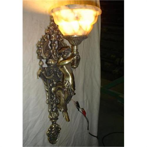A pair of casted bronze and alabaster stone sconce with winged mermaid figural. The shipping cost within USA is $ 100.00. This item was rewired to USA standards.Due to the nature of alabaster stone the pictures may not accurately represented the color and pattern of the alabaster.It will take 4 to 5 weeks to deliver