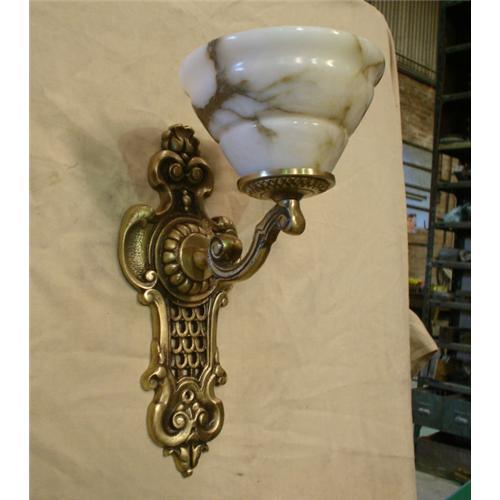 The artwork of the cast bronze of this pair of alabaster stone sconces make this item unique.Shipping cost within USA: 75.00. Some assembling may be required. They were rewired to USA standards.Due to the nature of alabaster stone the pictures may not accurately represented the color and pattern of the alabaster.It will take 4 to 5 weeks to deliver