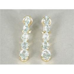 A pair of aquamarine drop earrings, each consisting of five graduated oval faceted aquamarines se...
