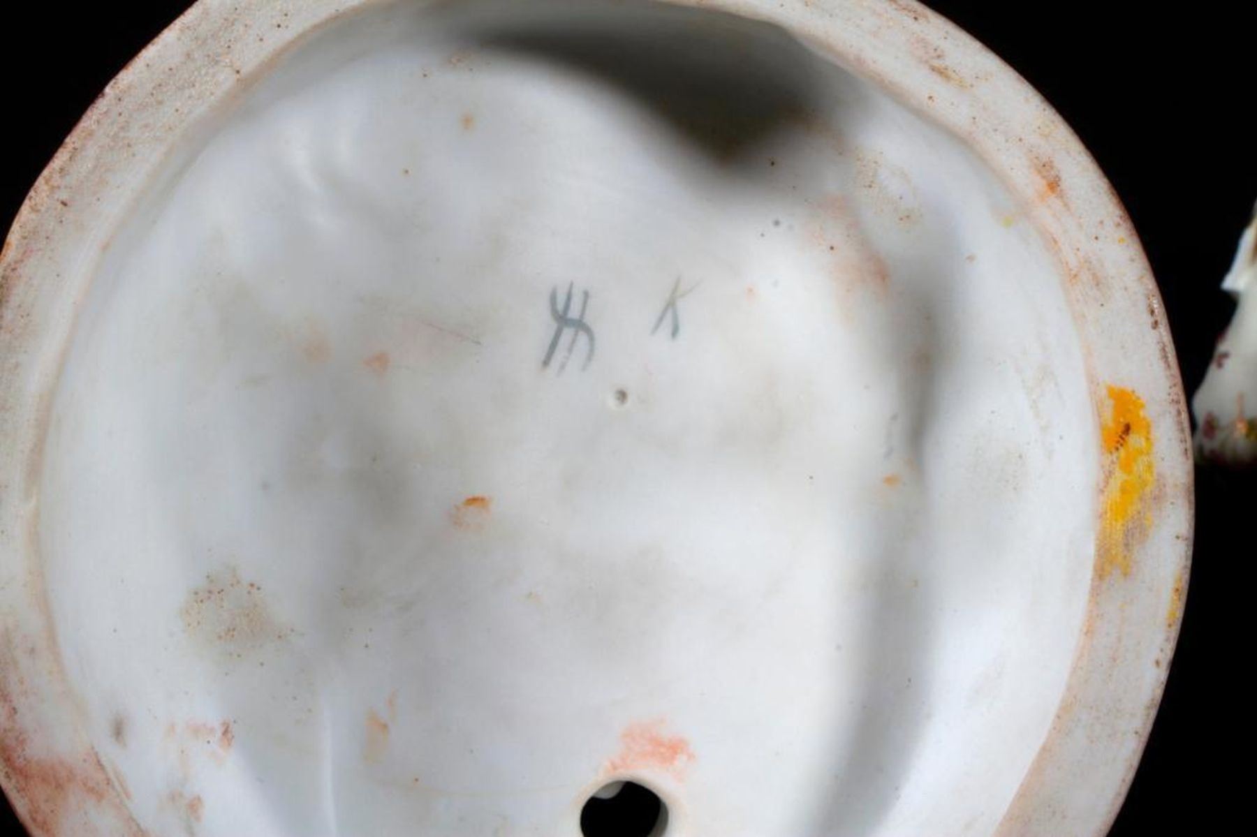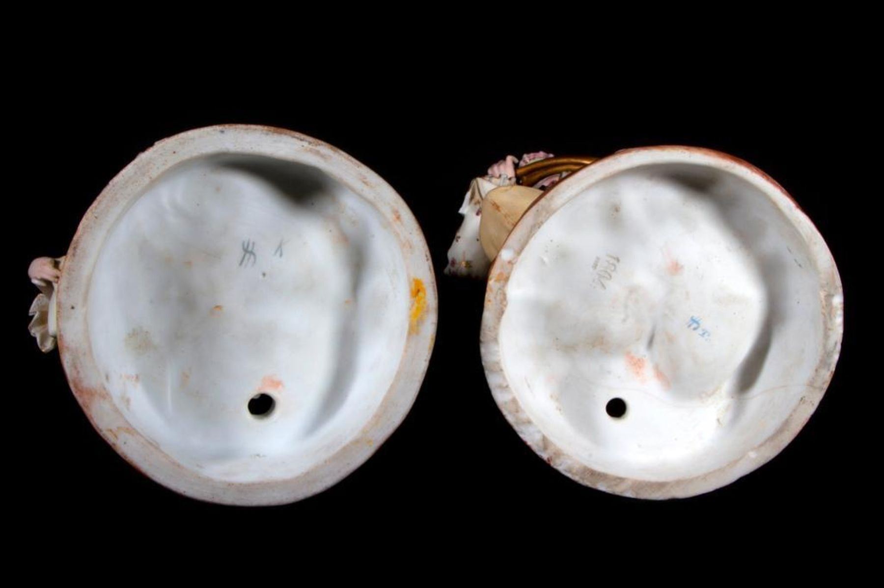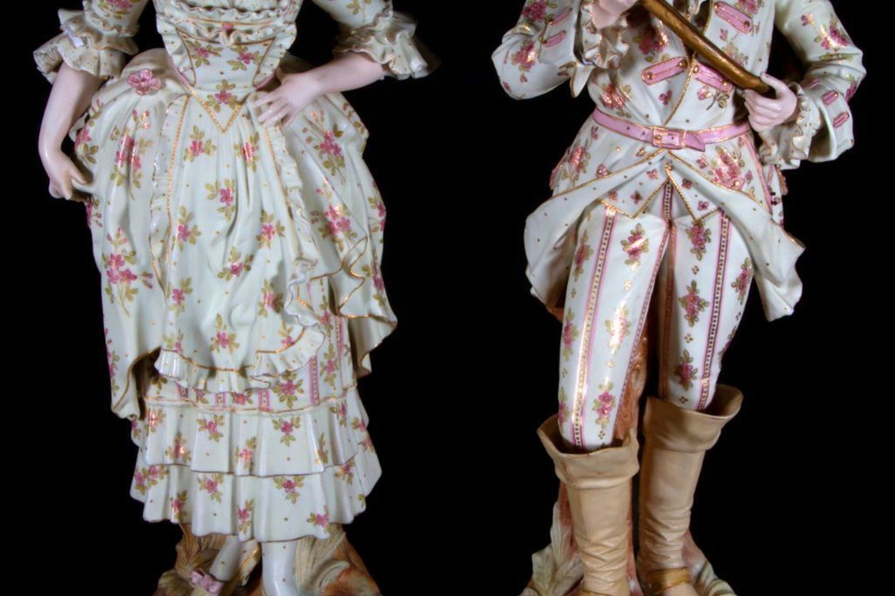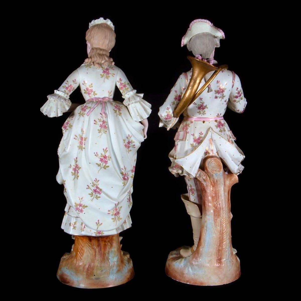 A pair of Continental bisque figures. H- 201/2" W- 8 1/2" D- 61/2". Condition: Good, loss to lady's finger.