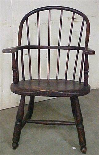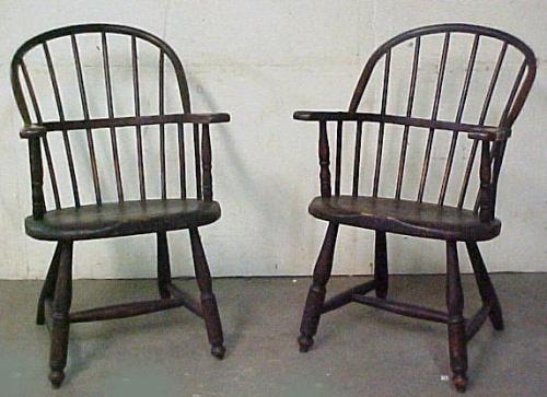 A pair of bow-back Windsor armchairs; six spindle back; early 19th C.; each measures 36" high (no visible defects)