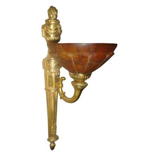 The artwork of the cast bronze of this pair of alabaster stone sconces make this item unique.Shipping cost within USA: 75.00. Some assembling may be required. They were rewired to USA standards.Due to the nature of alabaster stone the pictures may not accurately represented the color and pattern of the alabaster.It will take 4 to 5 weeks to deliver.