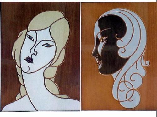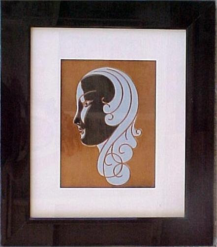 A pair of copper enamels; stylized Art Deco portraits of two women; each image measures 12" x 9"; framed (no visible defects)