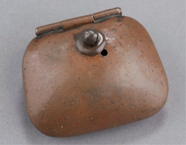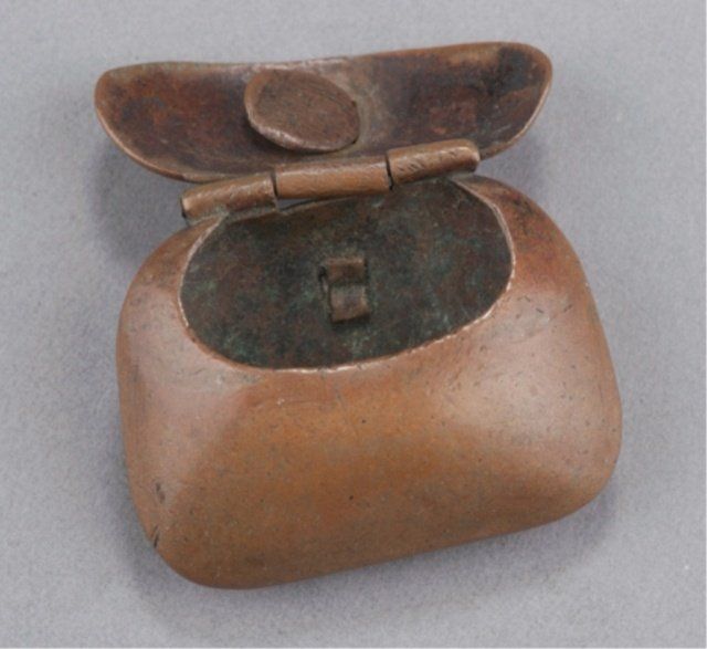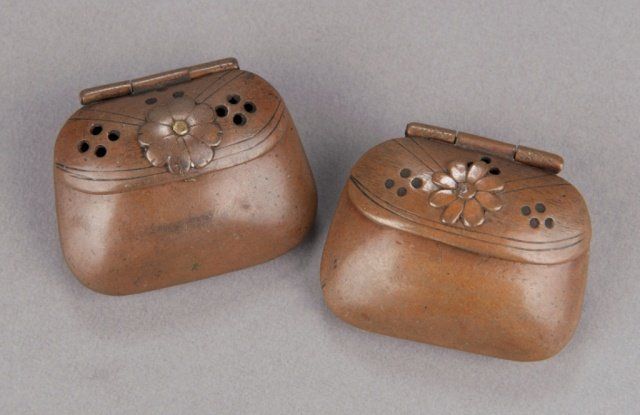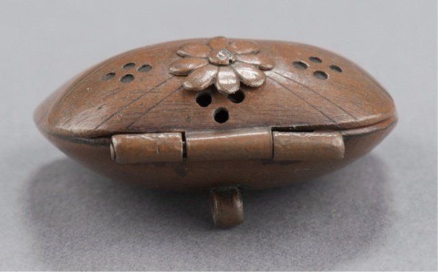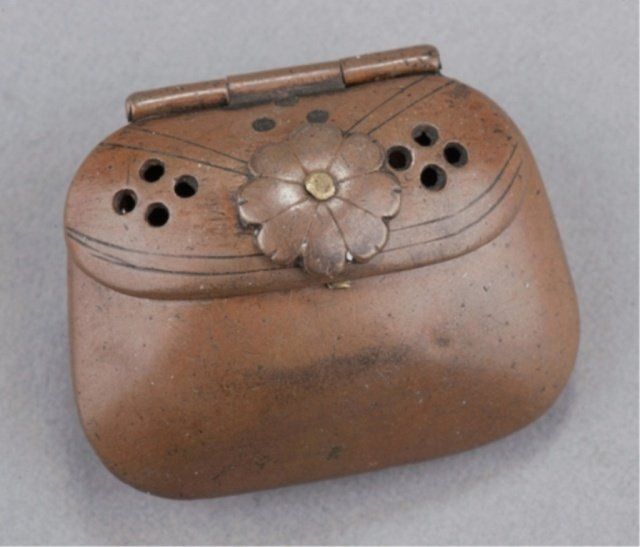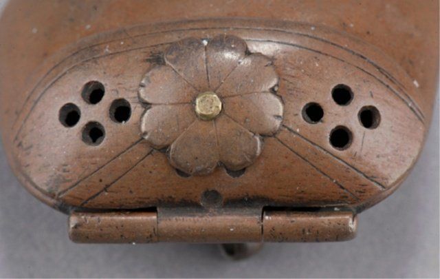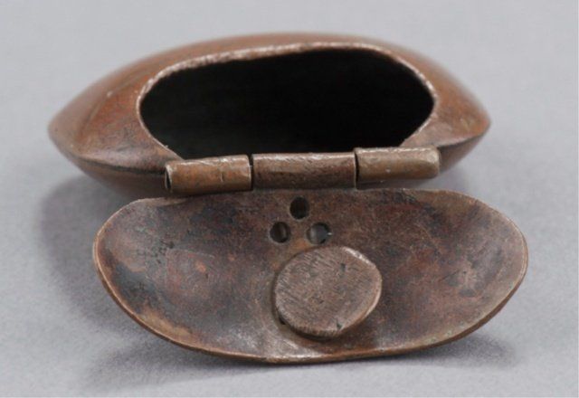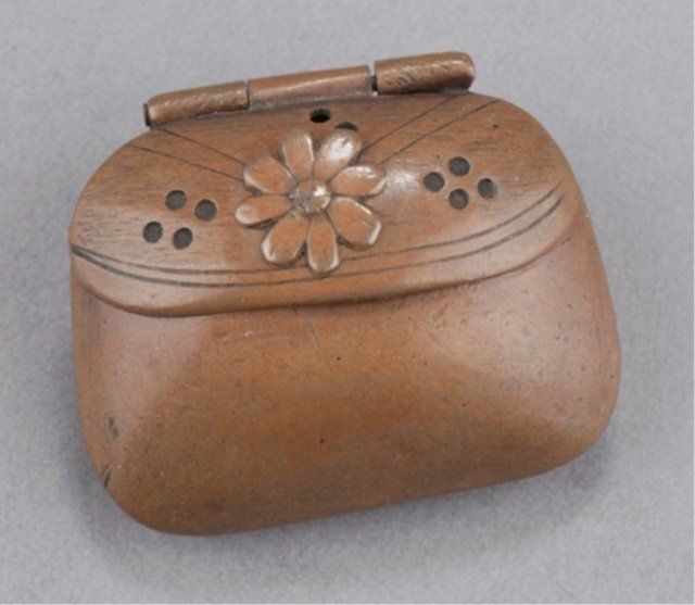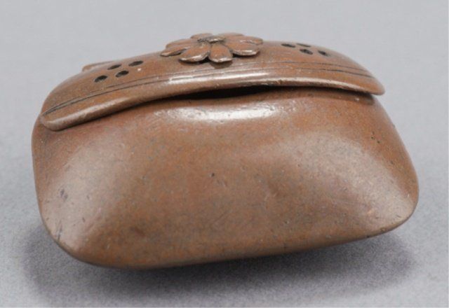 Attributed to Ichiya, Mid 19th century. with hinged covers, the clasps secured by eight-petal flowers. 1 3/8in (3.4cm). Unsigned. A similar functional manju is illustrated in Edwards & Krebs - Netsuke Collection of the Peabody Museum, page 131 (E26557).