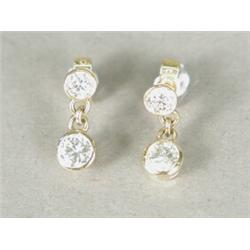 A pair of diamond drop earrings, bezel set in 9ct gold (total approx 1.3cts) Est. 800/1000