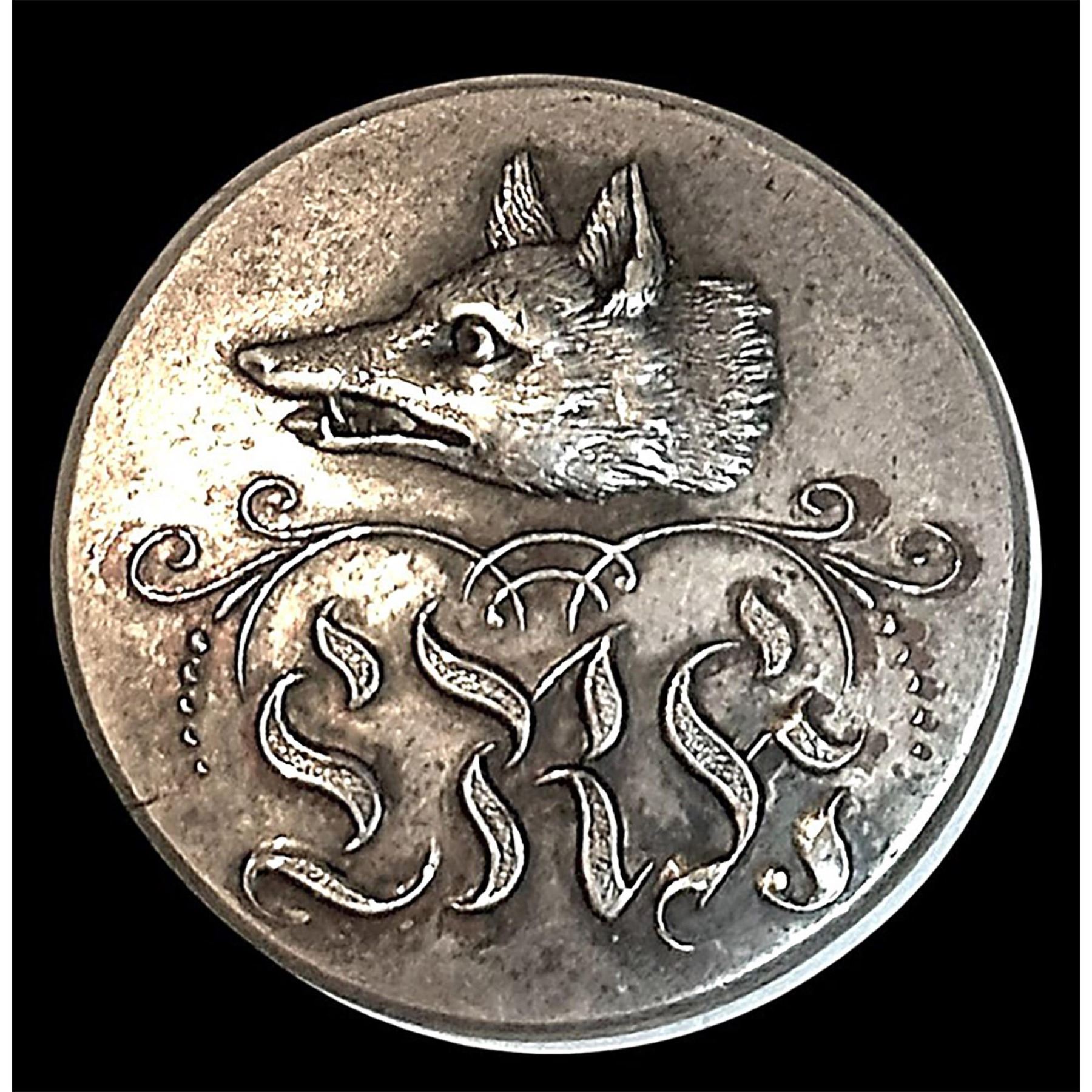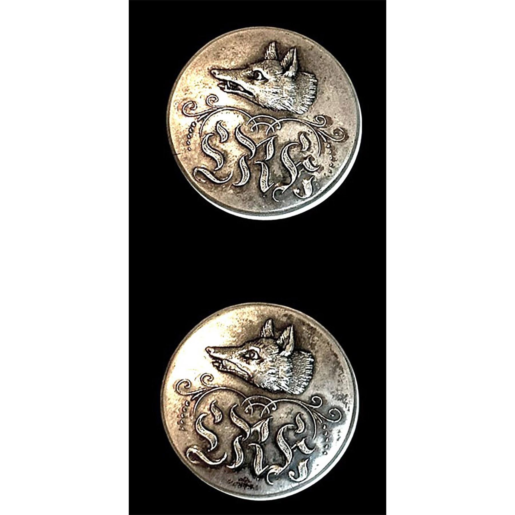 2 Medium size 19th century fox head buttons. This lot includes two buttons obviously from the same set but with slightly different depictions of the fox head. The initials embossed on these along with the fox heads suggest a certain hunt club but unsure what one, perhaps some of our bidders know.