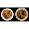 2 Small 19th century pearl and litho DOG examples. Here are two buttons that are not all that common. These used to be known by collectors as "Waistcoat" buttons and in this case the center is a litho under shield of two different dogs and set in pearl bases with elongated shanks. Very nice examples.