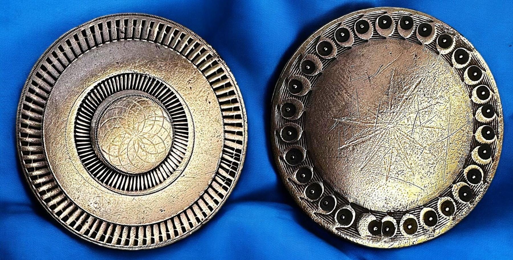 2 Large 18th century copper examples with a pattern design. This lot offers the bidder to 2 different hand chased copper examples from the late 18th century. Nice designs.