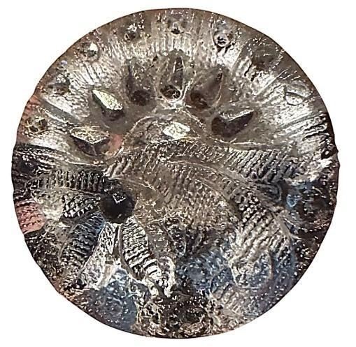 2 SmaLL/large 19thn C Mother/Daughter pair pictorial examples. This lkot is one of several nice Lacy glass buttons in thr auction that was sent to us from an extremely old collection and not unearthed for many years. This is a beautiful example of Czecholavakian glass from the late Victorian period and is known to collectors as Lacy glass. This example boasts large Sunrise pictorial design on both size buttons.