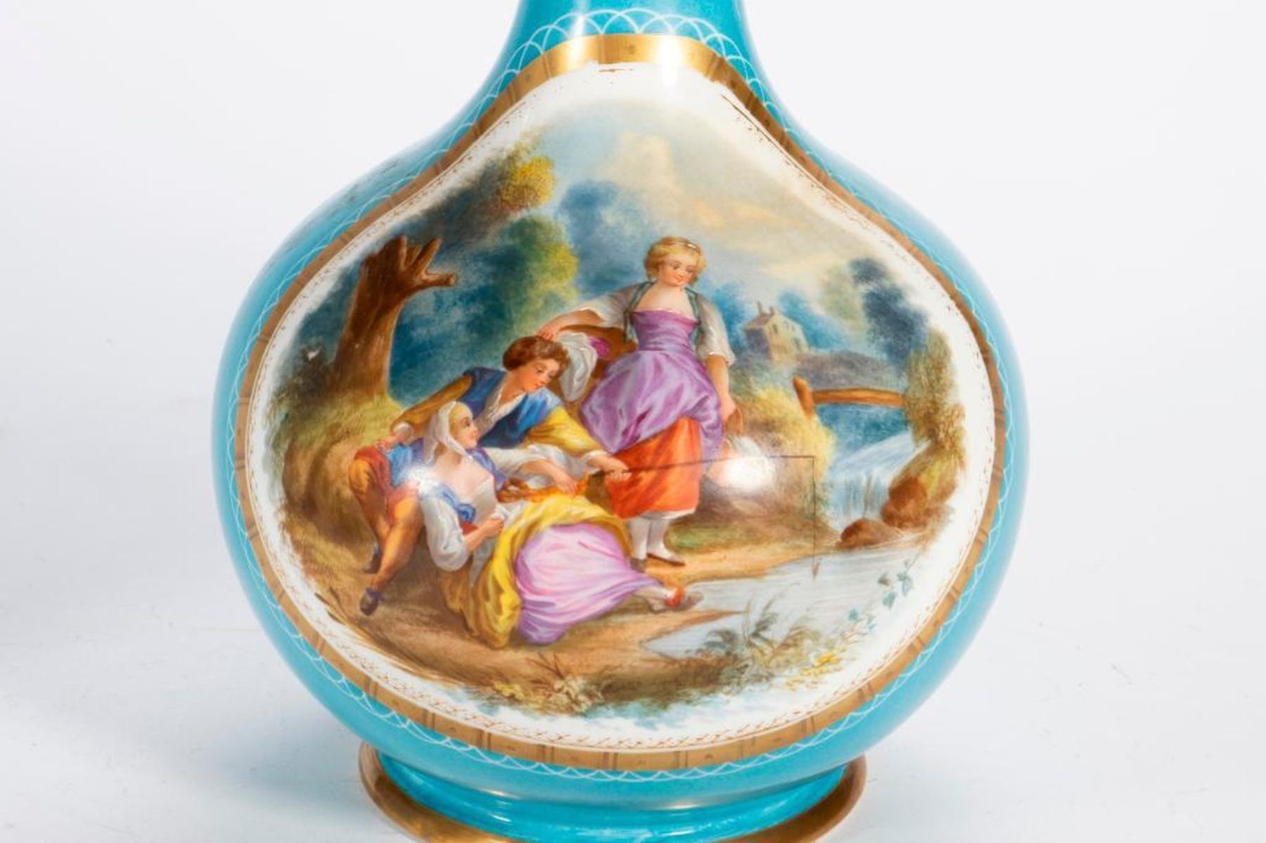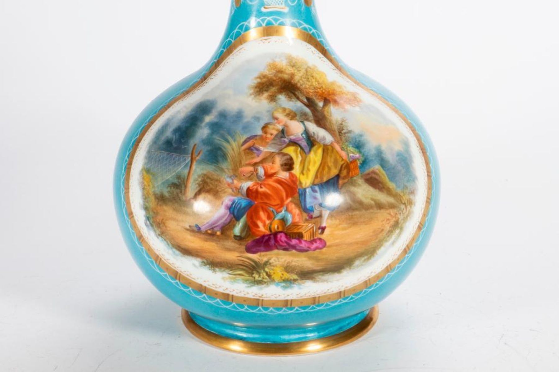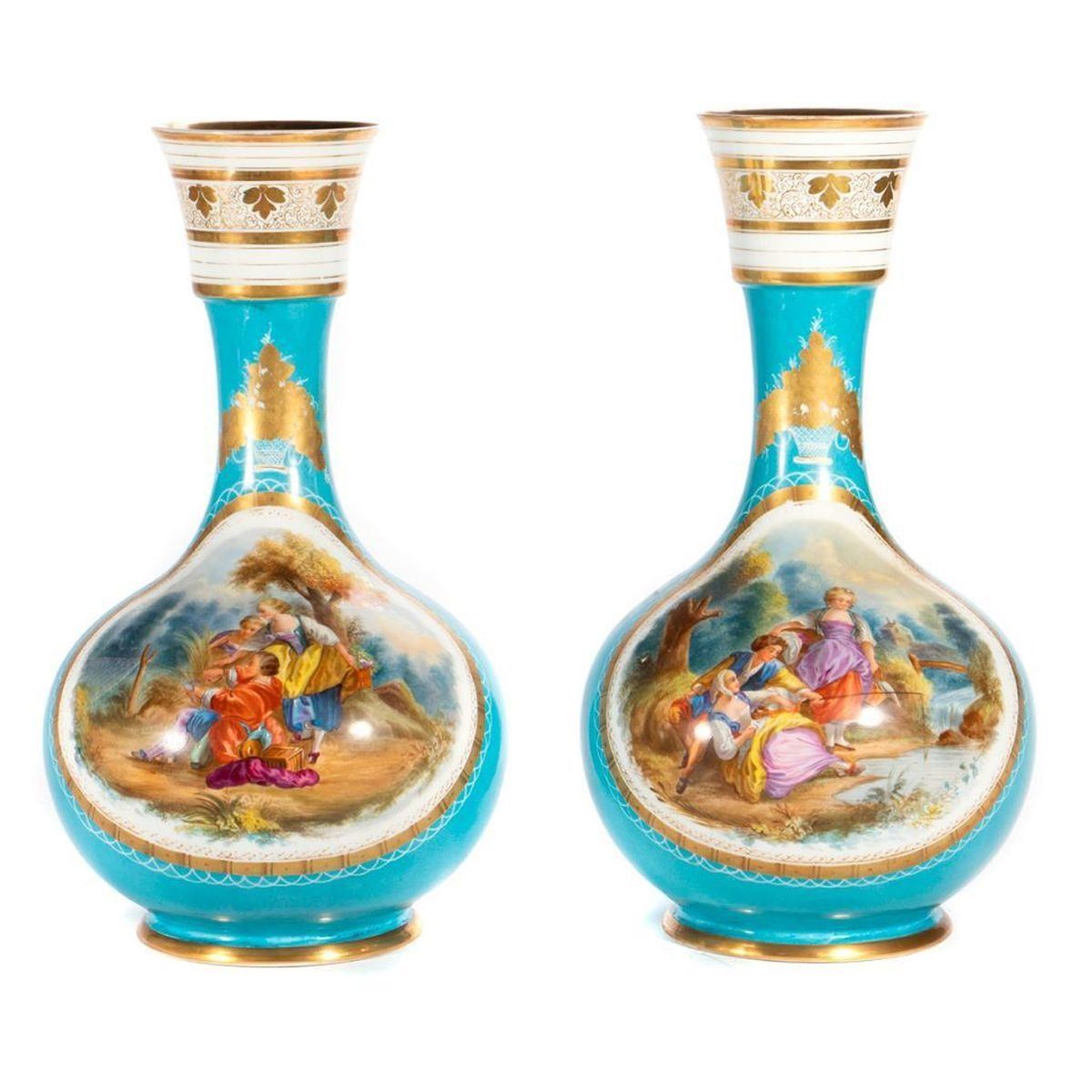 A pair of early 20th-century European painted porcelain vases, 17 inches in height each