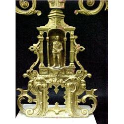 A pair of girandoles, each with triple candleholders, on architectural standards with standing figurines, rectangular marble bases, cut glass prisms attach to leaf decoration around each candleholder, 19th C. Estimate 300/600