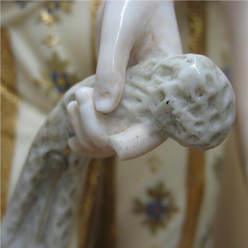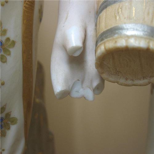 A pair of hand painted and enameled bisque figural lamps; marked on bottom (unknown mark) and impressed number 1556; late 19th C.; 24" high; fingers missing
