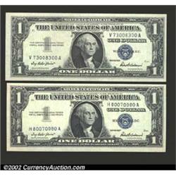 A pair of interesting serial numbers on 1957 $1 Silver Certificates, Fr-1619, both grading Gem CU. 2 notes