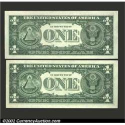 A pair of interesting serial numbers on 1957 $1 Silver Certificates, Fr-1619, both grading Gem CU. 2