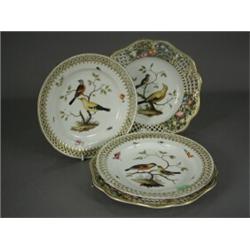 A pair of late 19th century Helena Wolfsohn cabinet plates, and a pair of Berlin porcelain cabinet plates, each decorated with birds, insects and flowers, blue A. R. and Sceptre marks, 24.5cm diameter and 22cm respectively Est. 100/150