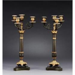 A pair of late empire partly gilt and patinated bronze four-light CANDELABRA, 46,5 cm high