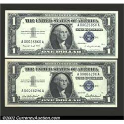 A pair of low serial numbered $1 Silver Certificates: 1957, Gem CU; 1957A, Gem CU. 2 notes...
