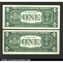 A pair of low serial numbered $1 Silver Certificates: 1957, Gem CU; 1957A, Gem CU. 2 notes