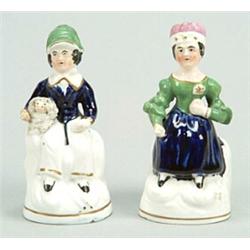 A pair of porcelaineous figures of Queen Victoria and another figure, probably the Prince of Wale...
