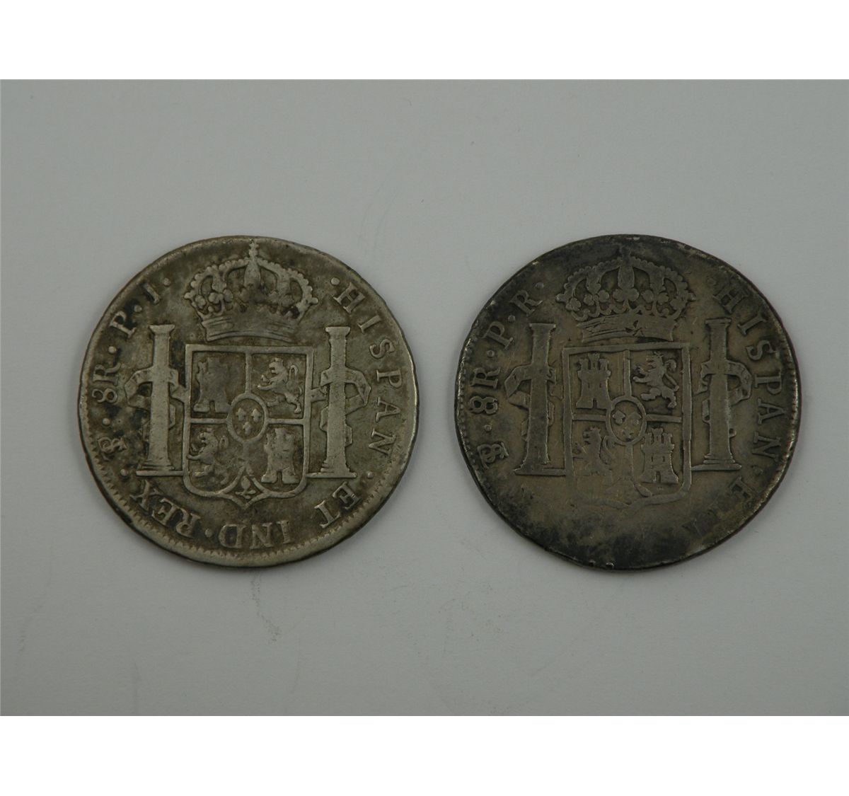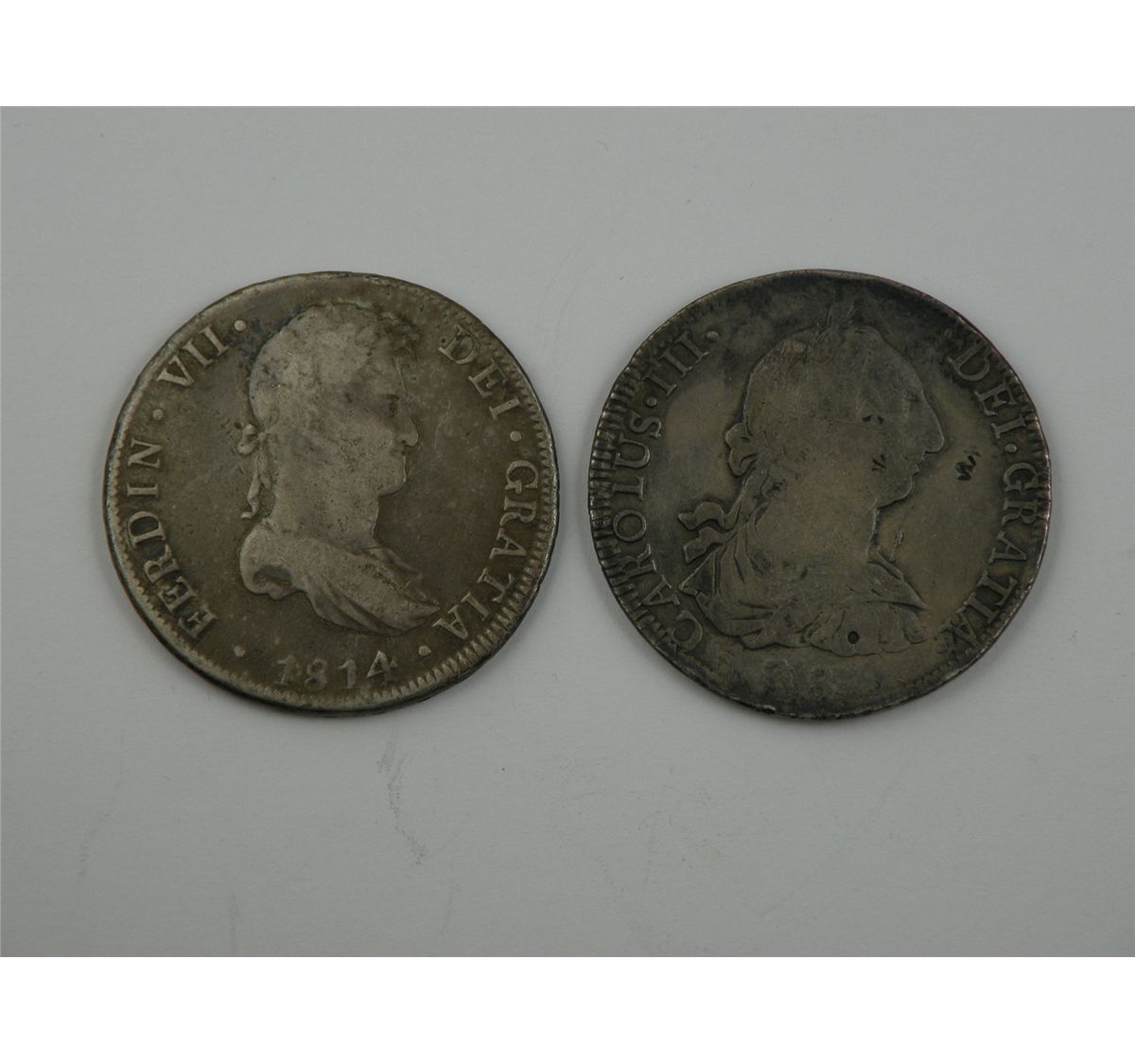 A pair of portrait Bolivian 8Reales. 1784 and 1814. Both are Fine. The former weakly struck in the date area and with a few light chopmarks. The latter is wonderfully smooth. Two coins. Est. $120